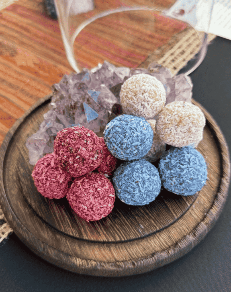 Hand-rolled truffles made from coconut butter and dates. Cacao Dream Spheres are rich with Peruvian heirloom cacao. Lemon-Lime Dream Spheres are bright and citrusy. Both are creamy, indulgent, and genuinely nourishing. Real food indulgence.