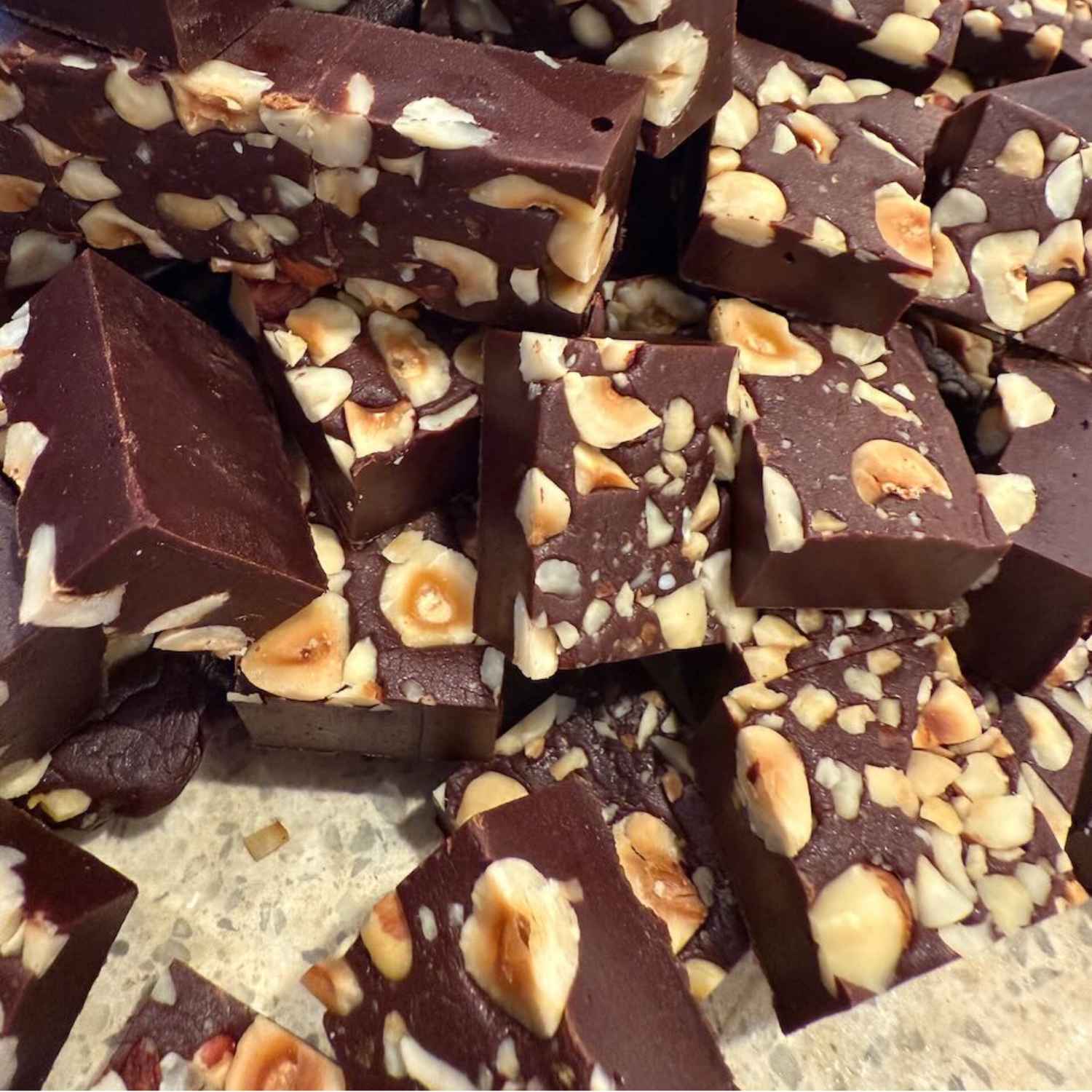 Cold pressed coconut oil*, Peruvian heirloom cacao powder*, neighborhood eggs, palm sugar, sea salt, Oregon hazelnuts (*organic)